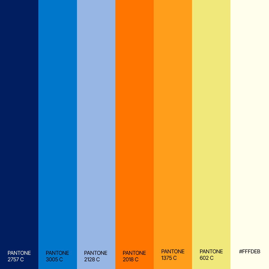 A identidade visual equilibra impacto e vivacidade. A escolha cromática mistura tons quentes e azuis vibrantes, refletindo o clima tropical, o frescor do mar e o movimento do dia que começa e termina à beira da orla. Os grafismos inspirados em ondas, formas solares e geometrias costeiras reforçam o dinamismo e o caráter lúdico da marca. O resultado é um sistema visual versátil e reconhecível, capaz de traduzir a energia de uma cidade viva, diversa e sempre em movimento.